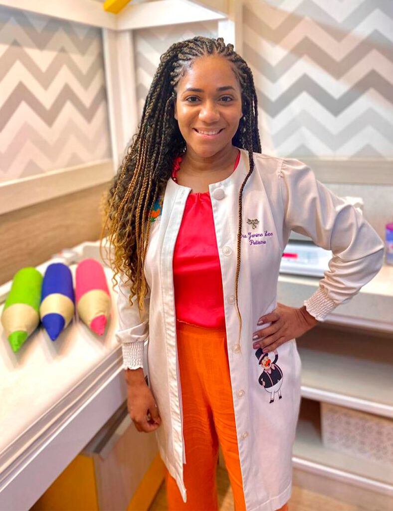 Mulher negra, esposa de Dalton e mãe de Betina e Benjamin. Sua paixão pelo cuidado infantil começou cedo e foi fortalecida pela maternidade. Com especialização em sono infantil e amamentação, atua de forma humanizada, unindo conhecimento técnico e empatia. Tem um olhar sensível às particularidades das famílias pretas, valorizando a identidade e promovendo representatividade em cada atendimento. Seu compromisso é oferecer um cuidado completo, com respeito, carinho e acolhimento.